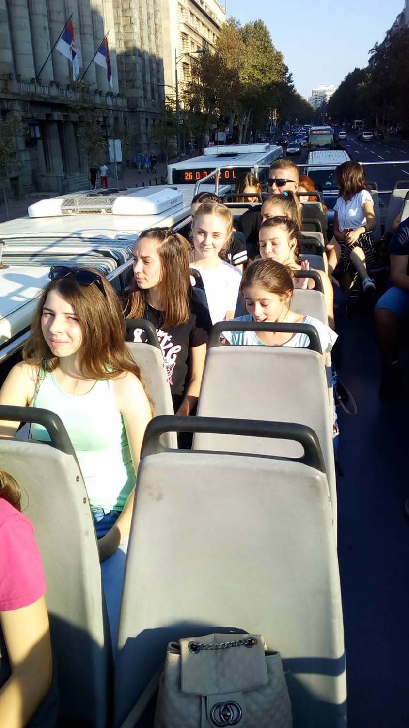 Дана 18.09. ученицима 1 године (7, 8 и 12васпитна група) организован је обилазак и разгледање града отвореним аутобусом. Ученицима који су тек стигли у Београд овај обилазак града представљао је леп догађај у којем су могли да упознају главни град на један потпуно другачији и модеран начин. Читав обилазак града ученици су могли да прате и кроз аудио подршку, где су могли да чују и појединости о главним улицама и трговима Београда.